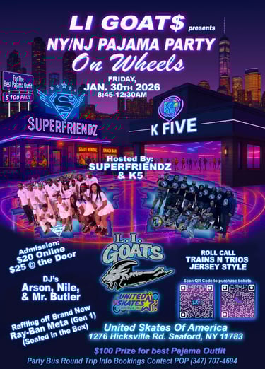 At LI Goats, we believe roller skating is more than a sport—it’s a lifestyle that fuels your body, lifts your spirit, and builds lifelong connections. Skating strengthens your health, sharpens your mind, and creates a family where everyone belongs. Together, we celebrate movement, support one another, and roll toward joy, unity, and wellness.
